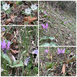 秘密の花園 カタクリ散策 我が家よりも遅く咲き始める場所がある。 今日で3回目のお忍びの🥷確認。 誰も気が付かないのかな。 毎年行っても見に来ている人はいない。 道路のすぐそばなのに・・・ 誰にも見られず他のお花も咲いていた🤗 さすがに白花カタクリは無かった💦💦