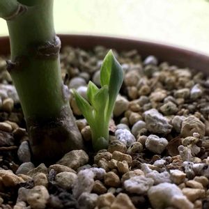 おはようございます🙋♀️ ❤️令和の芽❤️ 三枚目参加しまーす😘 🧝♀️マサイの矢じり🧝♀️ セネシオ(多肉植物) まじまじと覗き見(^O^☆♪ てっぺんには花芽らしきものが🌼 足元には新しい仔が一人👼 『令和の芽 』のおかげで沢山の気づきがあります もんもんちゃん ありがとう☆〜(ゝ。∂) 矢じりが飛ばないように管理(笑) "マサイの矢尻"は、葉っぱが矢のような形をしているので、こういうネーミング👌 路地植えで大増殖するらしいから いつか鉢を卒業する予定💪
