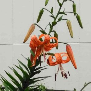 いつも通る道路側に とても綺麗に雨に濡れて 咲いて居たのをpicしました。名前を教えて下さい。 回答を有り難うございます。 「オニユリ」(鬼百合)ですね
