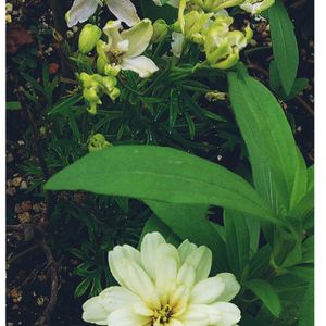 今日の2枚目です✌️😉 「今日のお花」の百日草サン 先日切り戻ししたので、咲いていないと思ったら1輪だけ咲いていました🤗💓 白い八重サンは菊のお花に似ています✌️😊 8/6picのデルフィニウムサンとパシャ📸