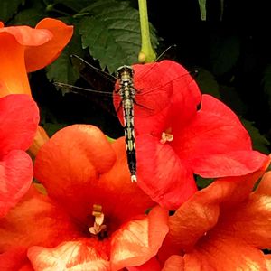 おはようございます トンボさん ノウゼンカズラで一休み