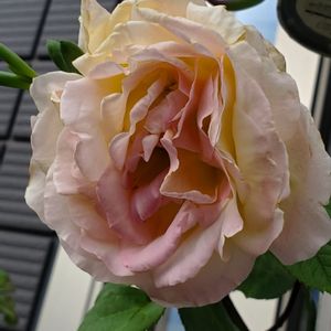 こんにちは😊 ピースさんの2番花🌹です 気がついたらここまで開いていました。 優しい色合いに、心が癒されます💕 今日は、朝から雨☔️です。 今夜から明日にかけても、かなりの雨量が予報されています☔️ 心配ですね。 皆さまお気を付けください。 九州地方の方々の、ご無事をお祈りいたします