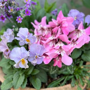 おはようございます☁️ 1日曇りの予報☁️ 寒そうです(((( °_° )))) 今朝のお花は 3週間ほど前に植えたビオラとガーデンシクラメン お花が増えてきました🎶 ビオラ ローランサングレーは 写真で見ると薄紫色 もう少しグレー 右側の子は 実際に見ても薄紫色っぽいです どちらもシンプルで美しい😍