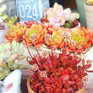 今日は曇りでちょうど植替えにはいい気候🎶 秋口に挿して置いたこの子に花芽が付いております🌸 でも、名前がわからなくなってしまった…💧 セダムには違いないと思うのだけれど…🤔