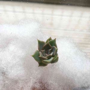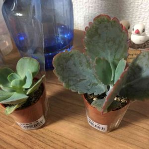 エケベリアです。お花を取りに行ったら、いただきました。 水につけておくと、根が出てきて、それを土に植えると増えるらしい。枯らしそう💦ですが、育ててみようと思います😊