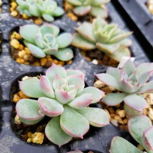 多肉アンさんの苗、アフィニスグレイフォーム💕 めちゃピンクで可愛い💕 多頭だったのを分けたよ😊 雨降って来た☂️ 台風来ないで〜