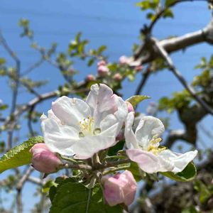 りんごの花💞 花は蕾の頃のピンク色から 満開をすぎると白色に変化していきます