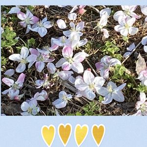 りんご🍎の可愛い花びら 🤍 🌸 🤍 GWに花摘みをしました 樹の下は綺麗な花びらの ジュータンです ♪︎♪︎♪︎♪︎♪︎♪︎♪︎♪︎♪︎♪︎
