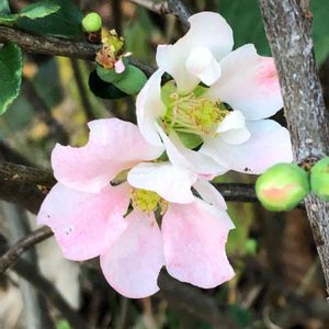 このボケの花🌸🌸も咲いてました。 花びらが虫に食べられちゃってるけど… 早朝散歩🚶♀️にて
