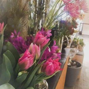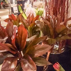 暖色系観葉植物棚🍂 視野を変えて眺めるとこんなコーナーも。 いつもの花屋さん🌷