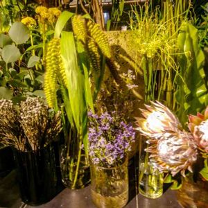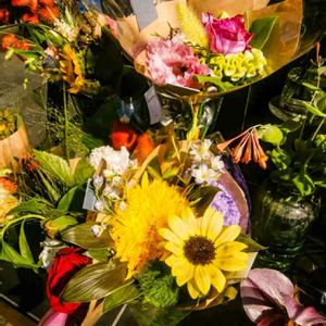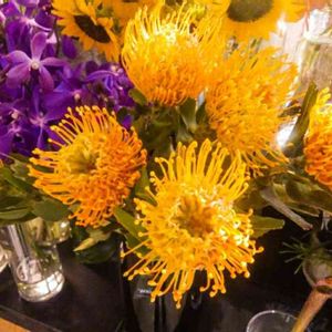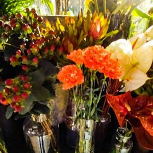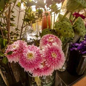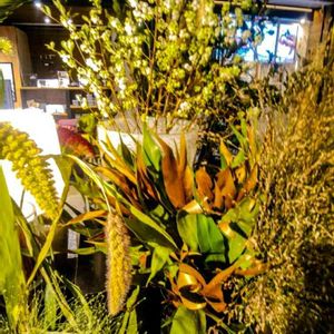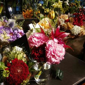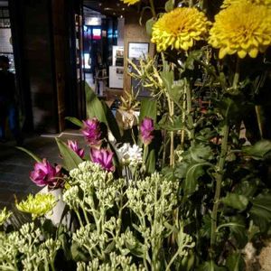 giftFlower26 秋色テーブルフラワーたち 多肉さん小鉢やオリーブ鉢なども置いてますが鉢物は値が張るので見ないようにしてます😅