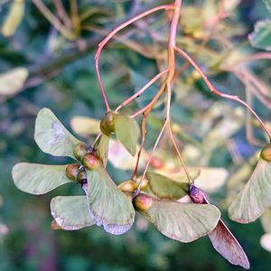 🌿イロハモミジの翼果🌿 街中の散歩に出会う木々は限られる中で、緑葉のモミジに清々しさを感じた♬ 色づいてきた翼果が… 秋には、2枚のプロペラのような翼とともに種子が飛ぶ╰(*´︶`*)╯ 🏷️ 木曜日は木 (今朝撮影)
