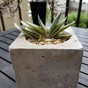 自作モルタル鉢のアク抜きも終わり、植え替え。 10個作って、型抜きで2つダメにしてしまいましたが… 1/8個のガステリア。これから、少しずつアップします。
