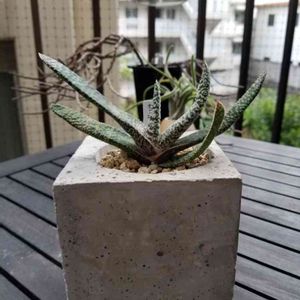 自作モルタル鉢 2/8個目。 ガステリア 詳細不明。 のびのび成長中。