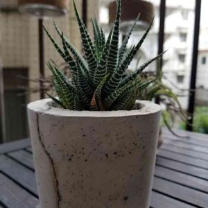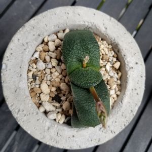 自作モルタル鉢 3/8個目。 淡い色に肉厚な葉。 コロッとしたフォルムで可愛いです。