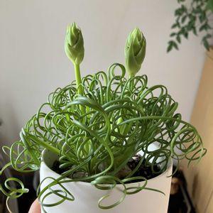 アルブカ スピラリス・フリズルシズル キジカクシ科 アルブカ属 クルクル葉っぱが面白い😵💫 夏に地上部がすべて枯れ、お星さまになったのかと思いましたが、休眠中だったのね? 秋に新芽が出てきました。ヤッター🙌