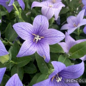 何度か登場している桔梗🤍💜💚 次々と咲きウキウキ😃🎶です✌️ 木立桔梗の様に背が高くならない分、密集して咲き始めてます➰💠 花も大きく平均9cm位あります🤍 絞り咲きも素敵ですが、この桔梗が1番好きかも…💓💕❤️ 因みにバックの緑色の葉🌿はウインターコスモスの葉です💚
