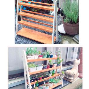 【多肉棚2号機】 完成!! 今回は1号機が満席になったので、その1号機の余った端材で設計図無しの行き当たりばったり製作₍₍ (꒪່౪̮꒪່) ⁾⁾ なのでこだわりも特に無いけど、下から2番棚はあえて固定しないで、取り外せば下に背丈のある奴を置き、奥にスライドさせれば小さい鉢置いても良し、手前にスライドさせれば奥行きある鉢置いても良しとした。 雨、遮光対策は…し、しらん…(; ̄ェ ̄)