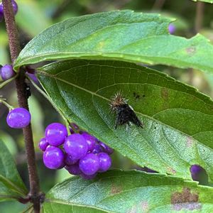 コムラサキの実を味見しようと思いましたがほとんど枯れた状態でした 残念😢 結構美味なのです ③④は注意⚠️苦手な方は②までお願いします 🏷️のんびり 🏷️愛しの紫 🏷️ピンクのお花 🏷️昆虫シリーズ に参加させていただきます ①②9/26実 ③④9/2 実 ⑤ 6/22花 実を付けると毎日かわいいメジロがやってきて食べてくれていました コムラサキ(小紫) シソ科ムラサキシキブ属の落葉低木 ※こちらは園芸品種のコムラサキです 葉はムラサキシキブよりも細長い 鋸歯は葉の上半分にしかない 花期 6〜7月 ムラサキシキブは葉柄より少しずれた位置から花をつける 自家受粉で実がなり単独でもたわわに実をつける 湿気にある土壌を好む為我が家の庭にも対応できています 日陰にも耐えるそうですが実を楽しむのではやはり日当たりが良いようです ①に黒いものが見えますが イチモンジカメノコハムシの幼虫が背に黒いゴミを背負っています ゴミの正体は脱皮殻とのことでクリーム色をしているようです 以前にも投稿した気がするのですが忘れてしまい今頃の再投稿になりました