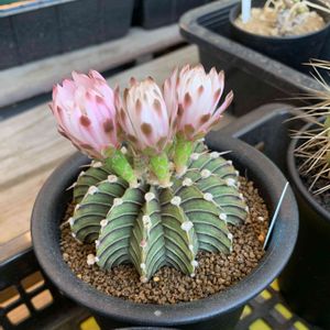 ギムノが次々咲いてます😍 ①牡丹玉 購入時、1.5センチくらいの小さなポットに双子で入っていた、片割れ。 数年かけて大きくなって、初開花🌸 薄いぴんくが可愛くて💕 ②③色違いの蕾が2つ 両方が全開したところは見れなくて残念 去年、てっぺんをナメクジに齧られて、 ダメになるかと心配したけど 元気に復活してくれて嬉しいです〜😆👍