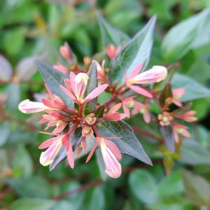 お出かけ先のグリーンの垣根に可愛らしいお花?❇️💮🏵️❇️ 検索したらアベリアと出ました🎶 満開の時は良く見ますが、咲き始めはこんな風なんですね🤗