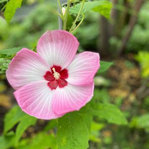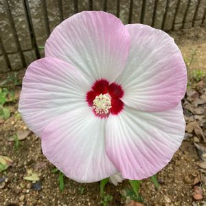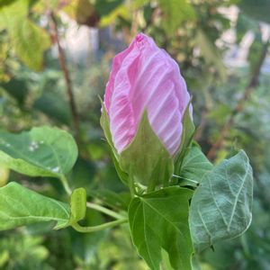 不安定な天気の日々です 我が家の新入り タイタンビカスです。 ほんわか。チークが、かわいいです。20センチ近くある、大きなお花です