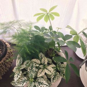 お気に入りの寄せ植え (◍ ´꒳` ◍) カポックくんはうちの古株で アスパラガスとピポエステスは 小さな苗だった子を寄せ植えしたもの 2ヶ月たったかなぁ… モフモフフサフサ ホワイトとグリーンのコントラスト カポックくんの次々でてくる新芽 幸せ ✨ 今日はゆっくりしよーっと