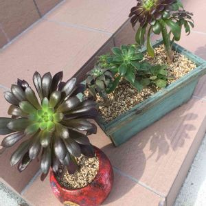 うちのアエオニウムさん達\(^-^ ) やっと植え替えてあげられました♫ 根付いてくれるといいなぁ〜(^人^)