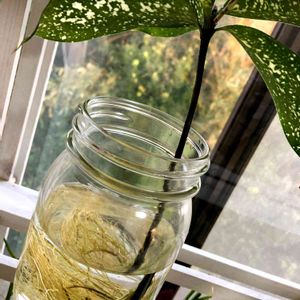 おはようございます☁️ 下葉が枯れて来て、ひょろ長くなってしまったディフェンバキアの先を✂️ハイドロへ。 下葉が枯れては仕立て直しを繰り返してるうちに、どんどん葉っぱがちっちゃくなってしまい、当初の6号鉢から3号鉢まで縮小⤵︎ でも、切った余分な茎は、水挿しでほぼ100%発根して育つので、ちっちゃな家族は増える一方👨👩👧👦👨👩👧👦👨👩👧👦💦 綺麗な斑入りの大きな葉に育って欲しいのに、なかなかそこまで辿り着けない難しさ_(:3 」∠)_