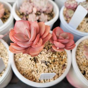おはようございます😋 今朝は寒〜い朝です🥶 メダカと亀🐢の水が凍ってた💦 今日は🏷peanyatsの日💖 初めて参加させてね💕 とっても可愛いピンク色のpeanyats鉢 お気に入りの水蜜桃ちゃんをIN🍑 可愛い永遠を描いてくれていて、さらに後ろ側にはtowaのネーム入り💕 石ころにはお花いっぱいでtowa Gardenの文字入り💕 ありがとう💖😋 左前は2年前に45ちゃんに貰ったアドニスちゃん💕 まだミドリンだけどだいぶん増えてきたよ💕 左奥は秋の霜綴化💕 この子も45ちゃんに貰った子 大人の遠足に行った時にお高い子だから私がお迎えをするのを渋っていたら、太っ腹の45ちゃんがお買い上げ〜 その子を少しくれた💕ヤッホー ちょっと写りは悪いけど、実際はめっちゃ可愛い色だよ💕 右手の奥はminto ちゃんに一年前ぐらいに貰ったスヨンちゃん💕 可愛く紅葉してきて少し大きくなってきたよ💖