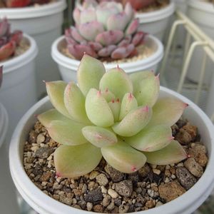 我が家の多肉植物 No.80 アルバビューティー 'Alba Beauty' コロラータ×アルビカンス 定番のエケベリアだけど、可愛いです😍 おんなじ環境下で管理してもこんなに色味が違うのがまた良いのです💕