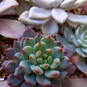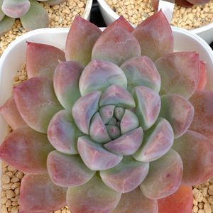 エケベリア「アルバビューティー」? 下の多肉、アルバビューティーの札がついていたのですが、本当ですか? 皆さんのpicと違っている気がするのですが。 なんにせよ、色が可愛いです😌💓