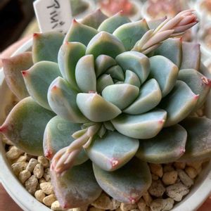 年末にお迎えした小さなアルバビューティー! 1ヶ月ほど室内で管理してましたが、先輩多肉たちと同じベランダ管理へ…。 忙しさで1週間ほど多肉パトロールしてなかったけど、昨日はポカポカ暖かくて☀、ついついベランダで長居…。 アルバビューティーちゃん❗花芽出してる〜〜😳 まだ赤ちゃんだと思ってたのに、成長してた(*´∀`*)