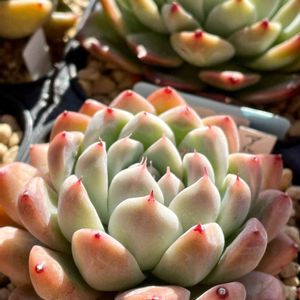 昨年お迎えした、札落ち韓国苗。 花芽がニョロンと出て来ました🌸 🏷ニョロン(26日)の日に初参加しまーす🙌 肉厚なところがスリョン(奥がスリョン)に似てるけど、ほとんど紅葉してません。 名前のわかる方教えて下さい🙏