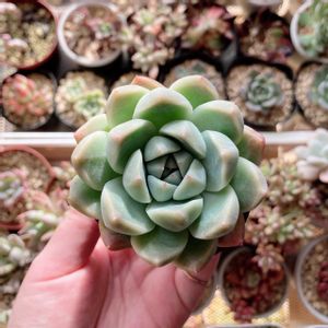 前から引き続き… 1年ちょっと前に「タチカワバナナ」さんで購入した多肉の様子です。 これは「アルバビューティー」 韓国苗だそうです。 紅葉時はピンクになるらしいですが… うちのは、そんなにピンクになっていないかなあ。 でもしっかりとした美しいロゼットで、けっこう好きなタイプですね~。 交配式は コロラータ×アルビカンス だそうです。 アルビカンスはエレガンスの中の種です。 これもA-25浅鉢に植えてます。