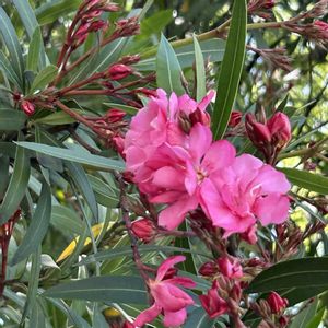 今日お花は キョウチクトウ 今日は広島原爆の日ですね 5月末に広島へ出張へ行った際に 久々に平和公園へ立ち寄りました その時にキョウチクトウのお花が満開で 小学校の夏休み登校日の時にいつも 歌っていた♪キョウチクトウの歌を 思いだしました 花言葉:注意、危険、用心