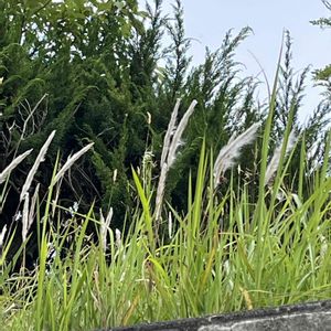 今日のお花 「チガヤ」 1枚目 6/9 当然のように群生しています 2枚目 5/16 雨で逆さまになっていますが赤褐色の雄しべが見えています チガヤ イネ科チガヤ属 単子葉植物 祖母に教わり小さな頃甘味のあるチガヤを吸っていたのを覚えています その時は名前は分からずでした 銀白色の絹毛のような長毛がゆらゆら揺れて懐かしく思います 花期 5〜6月