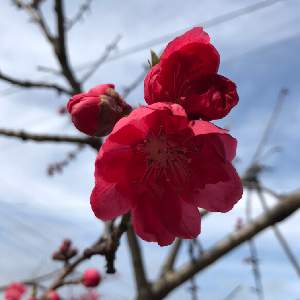 花の後硬くて丸い実が付きます。花も実も極細のエダに付いてます。