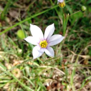 庭石菖のお花が今日も咲いた✨ちっこいスイカみたいなのは実だと思っていたから、もう蕾はないのかなぁと思っていたのに咲いた😳この丸いのは実ではないのかな?蕾はどれだったのだろう🤔