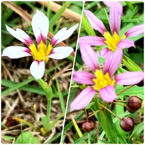 千葉県のとある芝生の植え込みに、我ながらよく気づいた!と思うほどミニミニサイズの花が風に揺れていました。 あまりにちっちゃくてかわいいので一生懸命、白い子の方を這いつくばって写真を撮っていたところ、少し離れた所にピンクバージョンが咲いているではありませんか! と、いうわけで並べてみました。この粒々した玉っころにタネが入っていたようです。残念、撮影時に気が付いたらタネを誘拐したかった……。