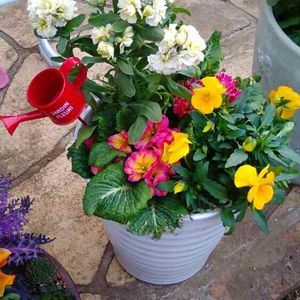 春なので淡い色で寄せ植えにしてみました🎵 朝日で撮ったけど少し暗めになっちゃった また明日詳しく紹介しますね🌼