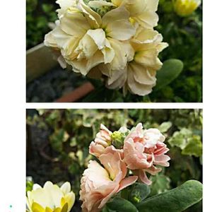 おはようございます、今日は雨なので水やりは一休み😃🎶 昨日投稿した寄せ植えのお花でとても素敵なストックに出会いました どちらかというと白、ピンク、紫と言った原色が多いなかで淡い色を見つけちゃいました ここ数年はストックは植えてなかったけどやっぱり可愛いかも☺