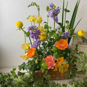 今日も寒いですね❄️ パラレルアレンジ 平行に挿すアレンジメントらしいです ワークショップに行きました💐お庭に自然に咲く感じにしたかったけどなってるかなーっ?💦ウフフ楽しんできました🙆♀️💕