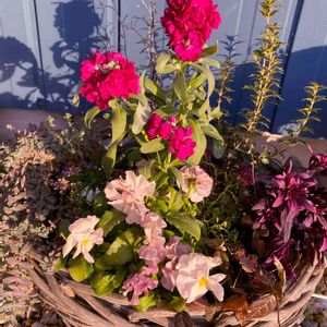 秋に寄せ植えしてたお花達💐、元気が無くなったので別の鉢に移植して、カルーナだけを残しました。 そこへ、ほとんど見切り品でお迎えしたお花達💐を植え替えました😊✨ 背の高いのがストック『ベイビーパープル』💜 フリル咲きビオラ『イスプリェール』💛 ユニークカラービオラ『プリムローズピコティ』💜 ガーデンシクラメンチョコレート🤎で寄せ植えしてみました💖 花姿は見切り品の為、まだ整っていませんが、これから春🌸に向けてモリモリ咲いて欲しいなぁ💕