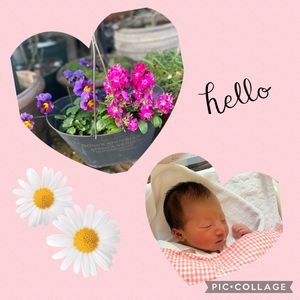 ストックとM'sビオラを寄植え💠M'sビオラは宮崎県の川越ロカさんのもので、切り花にできる花首の長いタイプです🎶深い紫が素敵です💜 ベビーは先月生まれた次女の第一子。 ただ今我が家に里帰り中で、楽しい忙しさの毎日です😊庭に出る時間が無いな😅