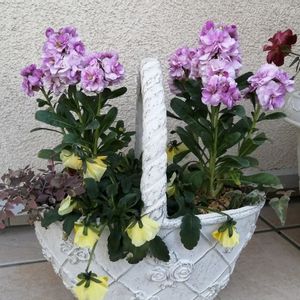 こんばんは🌃🌙*゚ いつもありがとうございます🙇♂️ 今日も寒かったです😓 明日からさらに寒くなる様なので、お互い体調崩さない様に気をつけましょうね! 1週間前に購入したストックですが、このビンテージっぽい色が気に入ってしまって。地元では中々出会えないので、3株連れて帰ってきました。 これで寄せ植えをと思って他にも色々買ってきましたが、いざ作ろうとしたら、ストックもキンギョソウもデカ過ぎて😅💦 8号鉢しが無かったので、ビオラとアリッサム1株ずつしか入れられませんでした(笑) やり直したいのですが、お気に入りのストックが枯れたら困るのでこれで楽しみたいです😊 アネモネとラナンキュラスの寄せ植えも作ったので、又見て貰えると嬉しいです!