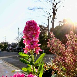 ショッピングモールつかしん フラワーポッドの花に夕陽があたりすてきでした。