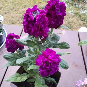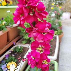 初めて植えたストック3色✨ 雨に当てないよう軒下管理🌱 雨上がり、無風の庭に出ると良い香りが漂っていました💖 デッカー植えにしてあるので盛り沢山な寄せ植えです🧺