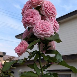 マリーヘンリエッテもつるバラらしくシュート乱立、伸びまくり😃巻き巻き女王の房咲きはそりゃあ重たくて💦弧を描いて枝垂れて咲いてる姿はまるでピンクのミサイル⁉️ドリル⁉️下を通る度に頭を小突かれる🤣 シュートが多すぎ、長すぎで冬剪定どうしようかと今から悩む🤔このフェンスには収まりきらない😓思い切ってベイサルシュートだけ残して古枝とサイドシュートは無くすか⁉️🤔