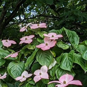 小宮公園にて その2 ☆ベニバナヤマボウシ①〜③ イチヤクソウという小さい花を見た後は、大きな木のほうへ! この日、小宮公園の中で、ピンク色のヤマボウシを数本、見ました。 その中でも、この木は立派でした。 枝垂れて咲いてます。 艷やかな葉が、ヤマボウシのピンク色を引き立ててますね🌿 6月4日